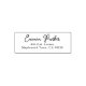 Añada un toque vintage a su correspondencia con este sofisticado sello de goma para direcciones de retorno. Su nombre se representa en una encantadora caligrafía retro, complementada con la dirección en un elegante tipo de letra serif. Ideal para familias, uso personal y marca de negocios, este sello le aporta una elegancia atemporal a cada carta y paquete, asegurando que su correo siempre sea una elegante primera impresión.