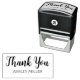 Simple Script Gracias con el Rótulo de sellos con autotinta Name en estilo con nuestros sellos de caucho con el estado de arte propio. Fabricamos nuestras tintas y almohadillas con materiales de altísima calidad para crear unos sellos ligeros como una pluma que dejarán una impresión nítida y definida en cada uso.