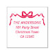 Elevate your correspondence with this elegant red ink stamp, decorated with a hand drawn illustration bow. The simple, modern font is complemented by the whimsical charm of the ribbon bow, and means you can add your return address to your letters and mailings with elegance and ease.