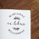 Nombre de redondeo de hojas botánicas Ex sello de autotinta de la placa de biblioteca Libris. Con una tipografía serif redonda que muestra su nombre con "ex libris" en el medio decorado con hojas dibujadas a mano.