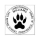 Sello de tinta personalizado con forma de huella de lobo redondo con nombre completo y dirección para remitente. Personalízalo reemplazando el nombre y la dirección de muestra con tu información personal. Muestra tu amor por el hermoso y poderoso animal salvaje y manifiesta al lobo que vive dentro de ti usando este increíble sello de dirección para correo. Agregará un toque personal a tu correspondencia y hará que se destaque al transmitir poder y fuerza.