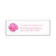 Sello con su nombre en negrita y moderno. Un elegante ilustracion rosa a la izquierda de los detalles de tu dirección.