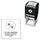 Seleccione cualquier color para este sello de goma que se autoinclina con sus iniciales, nombre y dirección en una letra simple y moderna.