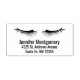 Sello autoincoloro con un gráfico negro de pestañas largas y femeninas.