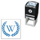 Esta elegante estampilla de goma de laurel monogramada es la elección perfecta para sus envíos de correo. Cuenta con una corona de laurel clásica con su inicial monogramada en el centro de la misma para su personalización. Diseñado por la artista de renombre mundial ©Tim Coffey.