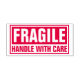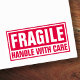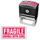Sello autoincoloro con el texto "frágil, manejable con cuidado".