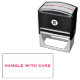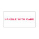 Mano roja con sello de tinta de cuidado. Ideal para paquetes y sobres. ¡Personalizable.