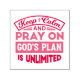 Manténganse anclados en la fe con este inspirador diseño de "Mantengan la calma y Recen - el plan de Dios es ilimitado". Un poderoso recordatorio para confiar en el infinito plan de Dios, perfecto para los cristianos, los guerreros de las oraciones y cualquiera que busque aliento en su vida diaria. Ideal para regalos basados en la fe, prendas cristianas, grupos de estudio de la Biblia, mercadería de la iglesia o inspiración personal. Ideal para pegatinas, imanes, camisetas, tazas, revistas y más.