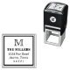 Diseño moderno de sellos de dirección con tu nombre inicial y dirección dentro de un marco cuadrado en negrita.