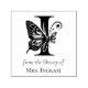 Sello de goma de monograma de mariposa con letra I - Diseño personalizable de placa de nombre de biblioteca. Agrega un toque personal a tu colección de libros con este diseño que presenta un monograma de letra A con detalles de mariposa y florales. Texto personalizable que dice "De la Biblioteca De" y tu nombre personalizado, este sello asegura que nunca perderás un libro de nuevo. Este diseño combina el encanto vintage con la practicidad moderna, lo que lo hace perfecto para marcar tu biblioteca personal o regalar a un compañero amante de los libros. Ya seas maestro, bibliotecario o simplemente amante de la lectura, estos sellos de placa de nombre personalizados son una forma elegante de decir "Este libro pertenece a mí". Ideal para bibliotecas personales, amantes de los libros, lectores, maestros y bibliotecarios escolares.