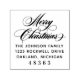 El estampillo de autotinta navideña presenta un elegante saludo "Feliz Navidad" en un guión de caligrafía floreciente. Personalice el texto moderno del personalizado con su nombre / apellido y dirección de retorno.