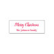Un guión elegante dice Feliz Navidad por encima del texto sin guión para tu nombre o un mensaje personalizado. Todo el texto se puede editar o eliminar.