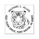 Sello de dirección de devolución de tigre personalizado. El arte de línea simple pero audaz de la cara de un tigre es el elemento central del diseño. El nombre personalizado y la dirección de correo se imprimen en un círculo alrededor de la cabeza del tigre y sus ojos penetrantes. Agregue un toque único a sus sobres y todos los elementos de correspondencia con este elegante sello de dirección de devolución minimalista.