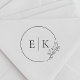 Sello monograma boda diseñado por personalizados que presenta un diseño moderno de líneas de dibujo en círculo y follaje.