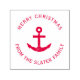 Esta plantilla única de estampado con autotinta de temática náutica personalizado incluye un ancla con un tema Navidad y sus detalles en forma circular. El ancla no tiene un color uniforme, lo que nos da un sabor cálido y hecho a mano que nos recuerda a una estampación de madera o a un tallado de madera muy bien curado. De hecho, el ilustracion que inspiró este diseño se hizo originalmente con un sencillo sello, que explica su encanto. El mensaje de nuestro ejemplo es para inspirarte, y puedes empezar desde cero si quieres y crear un mensaje completamente nuevo, e incluso una ocasión diferente. También puede cambiar el estilo y el color del texto. Elegimos un tono rojo, pero también hay otros colores. Crea tu propio aspecto personalizado con las herramientas de diseño intuitivo, y deja que tu imaginación sea tu guía!