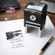Un conveniente sello de autotinta del nombre de la Compañía de Bandera Americana para su negocio. Añade fácilmente tu nombre, título de trabajo y dirección a las plantillas, imagen de la bandera de EE.UU. Perfecto para una compañía de construcción estadounidense, militares, gubernamentales y veteranos.
