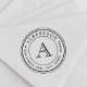 Sello de dirección de retorno con tinta automática y diseño circular diseñado por el personalizado que presenta un diseño de monograma personalizado clásico y elegante. Personaliza hoy mismo este bonito sello para darle un toque de estilo a tus correos habituales.