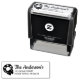 Un diseño de sello personalizado con tinta incorporada con tema invernal que presenta un círculo junto a su nombre y texto de dirección de devolución. Ideal para agregar un toque extra de sello a mano a sus tarjetas de Navidad.