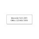 Esta marca que se autoinclina es una plantilla de texto para el nombre y número de teléfono de un médica impreso. La línea superior es el texto impreso para el nombre del médico. La línea inferior del texto de visualización es para el número de teléfono.