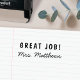 Simple personalizado "¡Gran trabajo!" estampilla de profesor en una moderna tipografía audaz acompañada del nombre del profesor en tipografía manuscrita. Todo el texto puede ser fácilmente personalizado para su propio mensaje como Gran Trabajo, Bien Hecho, etc. ¡El accesorio o regalo perfecto para cualquier profesor!