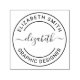 Un moderno diseño de sellos de caucho con autotinta para personalizados profesionales que presenta su nombre en moda caligrafía de guion enmarcado en forma circular con su nombre completo y título de trabajo (u otra redacción preferida).