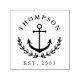 Elegante sello de goma náutica con ancla sobre una corona. Nombre de su familia en un texto curvo encima del delimitador. Debajo, el año en que se estableció su familia.
