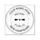 Esta estampilla redonda muestra el aspecto y diseño de muchos diseños de sellos notarios públicos del estado. Consulte con su estado para ver si esto es aceptable, pero es probable que pueda usarlo. Asegúrese de editar el nombre y el estado.