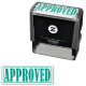 Perfecto para documentos aceptados y otros fines comerciales, estos sellos de caucho incluyen la palabra "APROBADO" dentro de un marco rectangular.