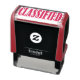 Perfecto para mantener su negocio organizado o para su uso en cualquier momento que desee mantener un documento secreto, estos sellos de goma incluyen la palabra "CLASIFICADO" dentro de un marco rectangular.