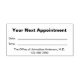Esta estampilla dice "Su próxima cita" en la parte superior. También hay líneas para la fecha y hora del nombramiento. También hay texto para mostrar que puede editar para crear un mensaje personalizado si lo desea. En la parte inferior se muestra el texto que se puede editar para el nombre del médica (o el nombre de la práctica) y el número de teléfono. Todo el texto se puede editar o eliminar.