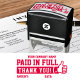 ¡PAGADO COMPLETAMENTE Gracias! - sello con pulgares hacia arriba - perfecto para sellar facturas, recibos u otro papeleo. Es fácil agregar su propio nombre de empresa o texto usando la opción "personalizar esta plantilla". El estilo de fuente personalizado también se puede cambiar utilizando la opción "personalizar". ¡Hay más sellos de goma disponibles en mi tienda Zazzle!