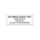 Para el depósito móvil sólo está en negrita en la parte superior. Puede introducir el nombre del banco en la segunda línea. La tercera línea es para el nombre del cliente. En la parte inferior, hay dígitos que se pueden cambiar al número de cuenta bancaria. Todo el texto se puede editar o eliminar.