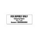 Sólo el depósito está en la parte superior. En el centro, puede agregar el nombre comercial y la firma de script cursiva para la aprobación de comprobación. En la parte inferior, hay dígitos para el número de cuenta bancaria. La primera, la segunda y la cuarta líneas están en negrita. Todo el texto se puede editar o eliminar.