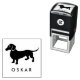 Silhouette clásica de dachshund con el nombre del perro u otro texto.