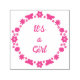 Este impresionante sello de auto-tinta presenta una imagen de arte digital de un grupo de flores y mariposas, cada una de ellas con un tono rosado para representar a una niña. Las flores incluyen Dahlias, lirios de agua, no me olviden ni crisantemos. Las flores y las mariposas están dispuestas en círculo y hay un texto personalizado en el círculo para que puedas personalizarlo como quieras, haciendo este diseño perfecto para revelar el género del bebé, para una ducha bebé o para celebrar a una bebé recién nacida.