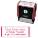 Este diseño de sello de goma lisa incluye el mensaje "Por favor, revise, Inicial y Regrese sin demora", además de una línea que podría ser escrita anteriormente con una firma o iniciales. También incluye un educador personalizado o un nombre de tutor. Puede ser utilizado por un educador, tutor o profesor para pedir a los padres o tutores de un estudiante que revisen y reconozcan la marca que un estudiante recibió en un ensayo, prueba, examen, examen u otra asignación escolar.