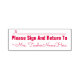 Este diseño básico de sello de goma incluye el mensaje "Por favor, Rótulo y vuelta a", junto con una línea para una firma o iniciales que se escribirán más arriba. También incluye un nombre personalizado. Tal vez podría ser utilizado por un profesor, educador o tutor para pedirle a los padres o tutores de un estudiante que revisen y reconozcan la marca que un estudiante recibió en un examen, examen, trabajo o algún otro trabajo escolar.