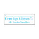 Este sencillo diseño de sello de goma incluye el mensaje "Por favor, Rótulo y vuelta a", además de una línea para una firma o iniciales que se escribirán arriba. También incluye un nombre personalizado. Puede ser utilizado por un tutor, educador o profesor para pedir a los padres o tutores de un estudiante que revisen y reconozcan la marca que un estudiante recibió en un examen, un examen, un ensayo, un periódico o algún otro trabajo escolar.