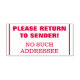 Este diseño básico de sellos de goma incluye los mensajes "¡POR FAVOR, VUELVA A ENVIAR!" y "NO HAY UNA DIRECCIÓN ASÍ". Podría utilizarse para indicar que el correo postal recibido puede haberse dirigido erróneamente y debe devolverse al remitente.