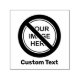 Signo de círculo de prohibición con imagen personalizado. Texto personalizado.