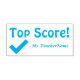 Este inspirador diseño de sellos de goma incluye el mensaje positivo "¡Puntuación superior!" y el nombre personalizado del tutor. También cuenta con una marca de verificación decorativa. Podría ser utilizado por un profesor o educador al calificar el trabajo estudiantil, para reconocer que un estudiante ha hecho un trabajo excepcional.