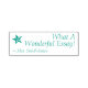 Este inspirador diseño de sellos de caucho muestra el mensaje positivo "¡Qué Maravilloso Ensayo!" y un nombre personalizado del profesor. También tiene forma de estrella decorativa. Podría ser utilizado por un profesor de escuela, educador, instructor o tutor al marcar las asignaciones, para reconocer que un estudiante ha tenido un buen desempeño.