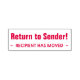 Este sencillo diseño de sello de goma incluye los mensajes "¡Regresar al remitente!" y "~ RECIPIENT SE HA MOVIDO ~". Podría utilizarse para indicar que el correo postal recibido se ha entregado a la dirección equivocada y debe devolverse al remitente.