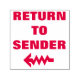 Este diseño de sellos de goma incluye el mensaje "RETORNO AL ENVÍO" junto con una flecha ondulada. Podría utilizarse en el correo que se ha entregado pero para el que se desconoce al destinatario.