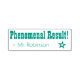 Este positivo diseño de sello de goma incluye el mensaje de elogio "¡Resultado fenomenal!" y el nombre personalizado del profesor o educador. También tiene forma de estrella decorativa. Podría ser utilizado por un profesor, educador o tutor al marcar asignaciones, para indicar que el estudiante ha hecho un gran trabajo.