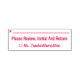 Este diseño básico de sello de goma incluye el mensaje "Por favor revise, Inicial y Regresa", junto con una línea para una firma o iniciales que se escribirán arriba. También cuenta con un educador personalizado o el nombre del profesor. Tal vez podría ser utilizado por un profesor, educador o tutor para solicitar que los padres o tutores de un estudiante revisen el trabajo del estudiante en un examen, papel u otra tarea.