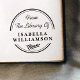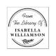 Ronda botánica de la biblioteca de la placa de la placa de autotinta. Este sello de libro redondo incluye un tipo de letra "De la biblioteca de" con su nombre en tipografía de serif y un elemento de hoja botánica debajo.