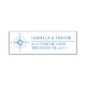 Sellos de tinta longitudinalmente modernos con temática náutica. Los sellos llevan un rosa de brújula náutica de estilo vintage con el nombre de la novia y el novio hacia el lado derecho.