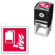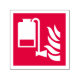 Unidad aplicadora de espuma e icono de llama sobre fondo rojo.