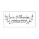 Rústicos de la boda favorecen el sello de caucho con laureles rústicos dibujados a mano con la palabra "amor y gracias" en estilo moderno de caligrafía y detalles en estilo moderno de letra sans serif. Perfecto para boda, ducha de bebé, fiesta de cumpleaños, soltera y cualquier ocasión especial.